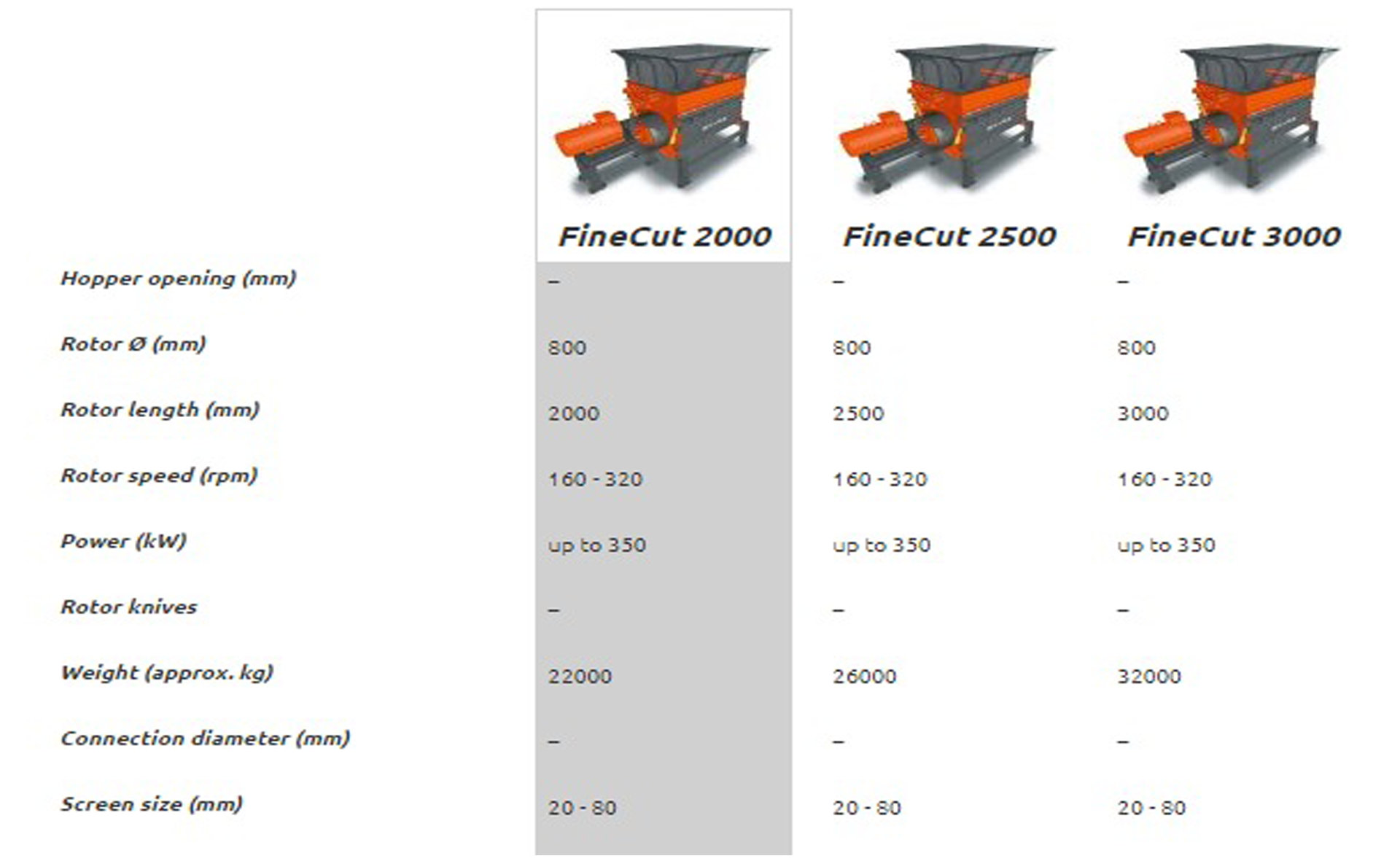 Smallest particle size, best sales opportunities. FineCut is the ideal secondary shredding solution for a multi-stage plant. Impressive outputs can be achieved due to its high rotor speed. The fine particle size of the shredded material corresponds perfectly with the increasing demand for higher RDF qualities.