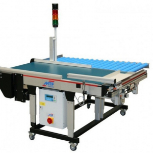 The MTF Multi-Rounder is used for part counting and distribution into different containers. In addition, it is also used when, for example, pieces must be cooled in different containers after the production process or bulk pins must be set aside in containers. Depending on the application, it can be used as a rotary distributor with an action radius of 360° or as a swing slide with a radius of up to 270°. The MTF counter control is very easy to operate. It measures machine signals and controls other peripheral devices, such as a feed belt, if necessary. Apart from the standard version of the slide made from hard PVC or stainless steel various materials and sizes are available. Special output functions and interfaces can be realised with freely programmable controls, e.g. Siemens S7, VIPA, Bollrath, etc.