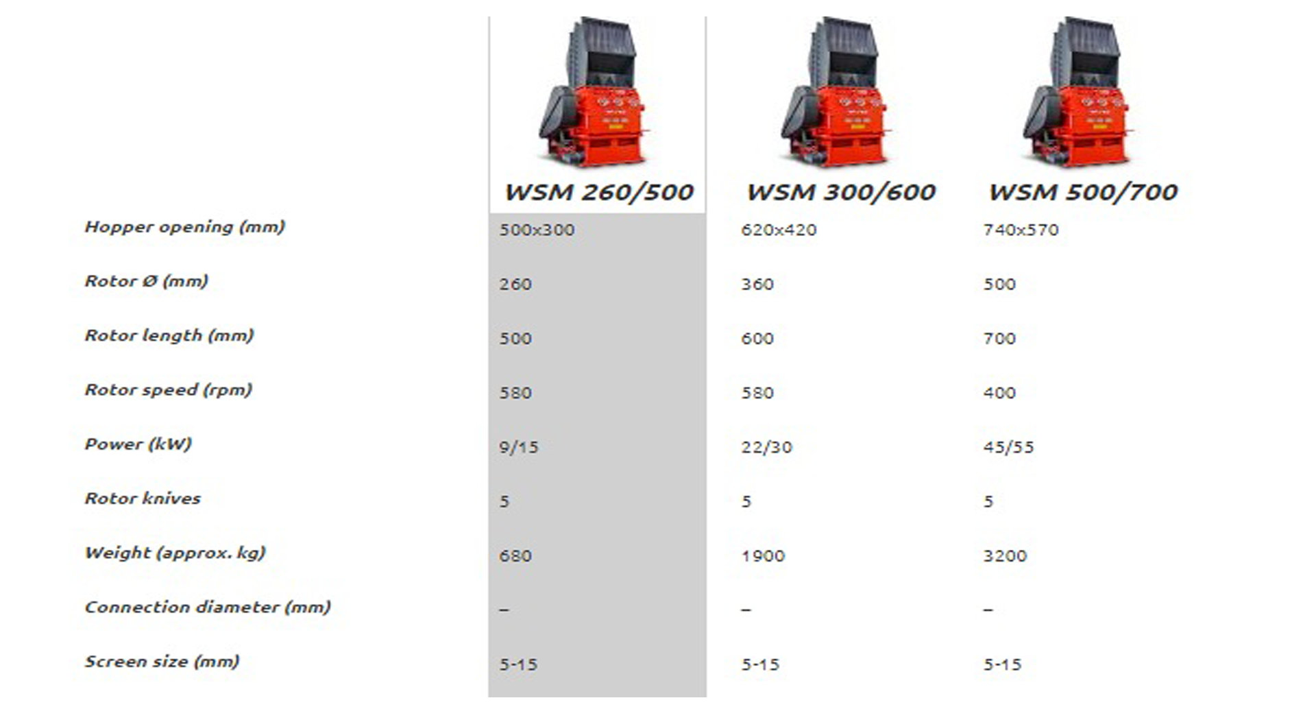 WSM granulators are suitable for shredding a wide range of plastics to make high quality granulate. They can process, for example, blow-moulded materials such as PET bottles, PE/PP bottles, canisters or buckets. In addition it is possible, depending on the version, to shred resistant materials such as thick-walled pipes. WSM granulators can be used either as a stand-alone solution or as second-stage shredders in two-stage processes. The various sizes and different versions make it possible to adapt the machine to your individual requirements.