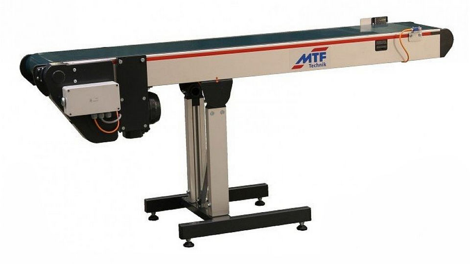 Belt conveyors with a width of up to approx. 500 mm and a length of approx. 2,000 mm are equipped with an underframe HE 010 in cases where the underframe supports should neither protrude laterally nor upwards, or if extreme belt inclines of up to 90° are required.