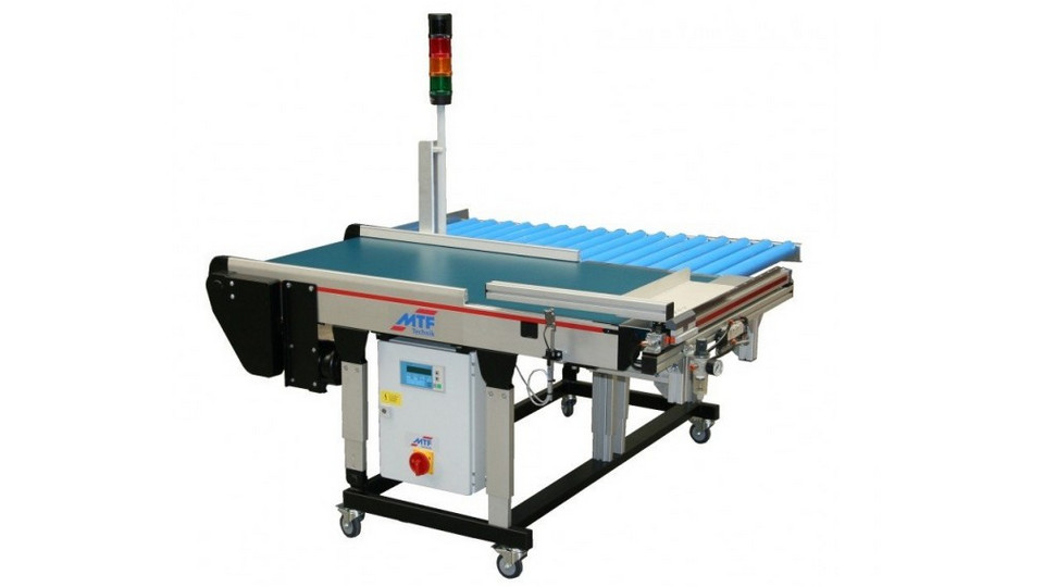 Conveyor GL-LD 010 combined with roller conveyor with pneumatic shifting unit