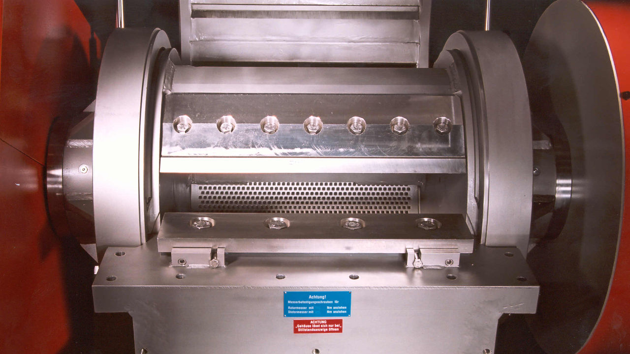 - Feed trough with pendulum flaps for guided material feeding and dosed material intakeUpper part of the housing opens hydraulically for quick and thorough cleaning and knife exchange