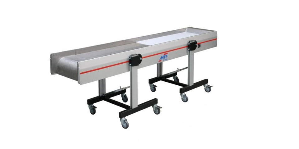 MTF Magnetic Conveyors are unique in their construction. The base HM 140 always provides a stable footing – even with longer belts. It is equally suitable for both horizontal and inclined or declined transport.