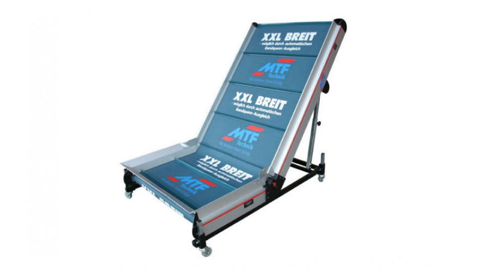 The MTF Multi-Tech angled belt conveyors are probably unique on the market with regard to processing quality and functionality. The patented belt tensioning mechanism ensures that the belt tension remains constant and balanced over the entire angle adjustment range between 0° and 60°. The combination of the high-quality materials for outer belts covers effectively prevents the belt from forming a bump in the belt bend and thus, from wearing out. The MTF angled belts therefore do not need a forcible belt guide and control. This reduces wear and downforce. Stable bend covers, chain protection parts and protection parts for belt rotation made of aluminium make these belt conveyors extremely resistant and reliable assistants in your production.