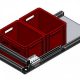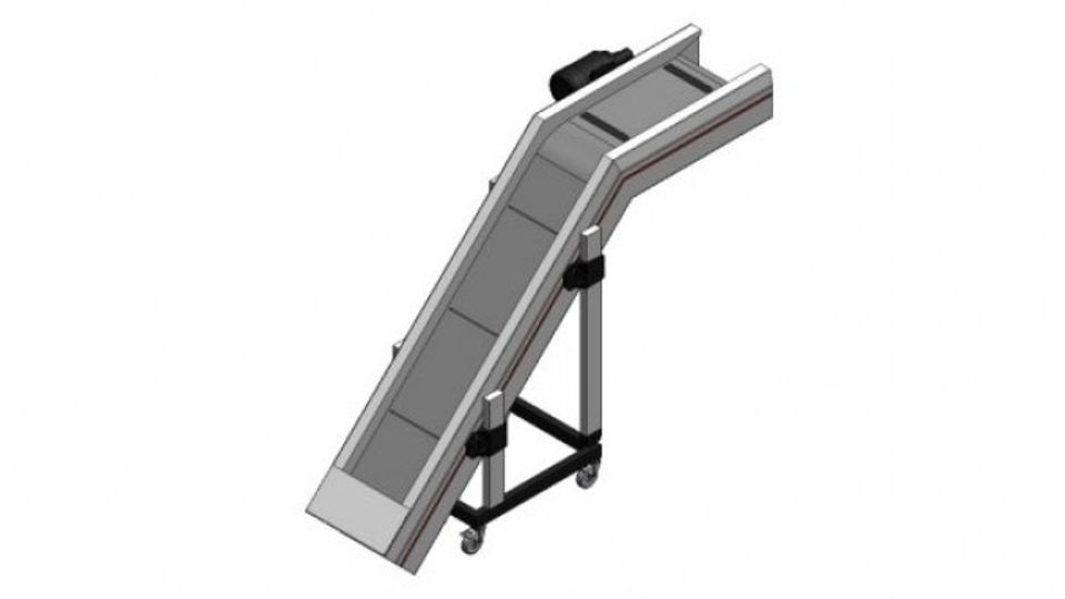 Angled conveyors with steel hinged plates and positive belt bend are used, for example, for the measured filling of machines. Especially with sharp-edged or heavy items, the hardened hinged plates are the right choice.