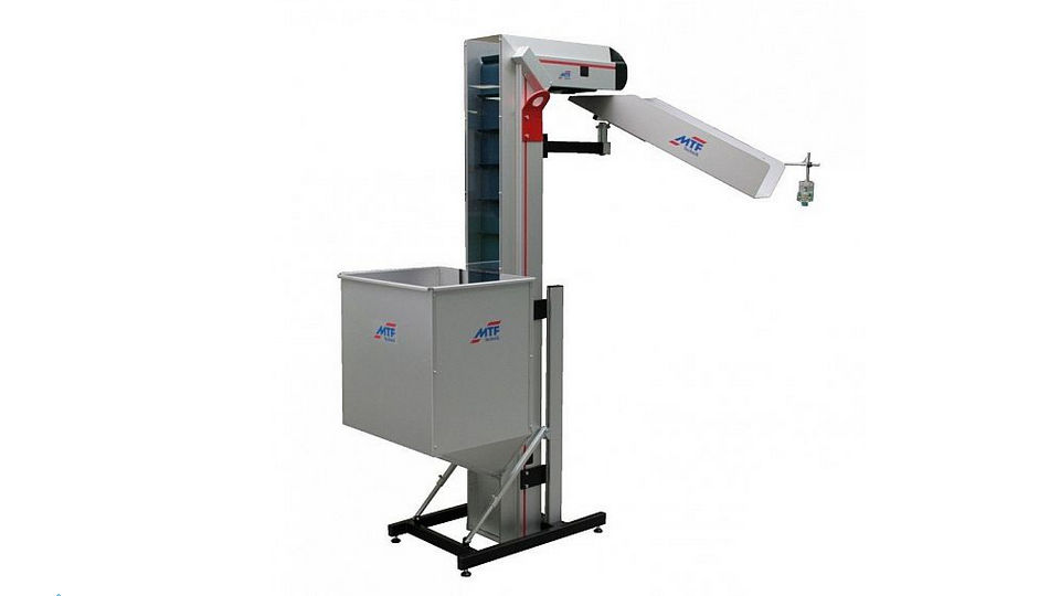 Special requirements need special engineering: The underframe profiles by MTF Technik can be used for endless variations. In this case, the struts are mounted with angle flaps at a vertical conveyor.