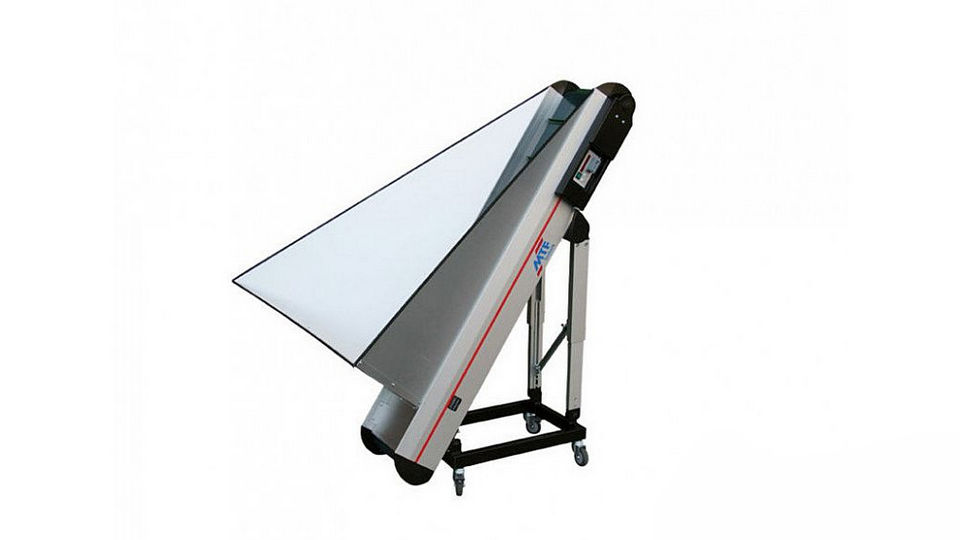 Steeply conveying bunker conveyors are used for the batched feeding of parts to subsequent processes. The often very large attachment hoppers require a safe standing. This is ensured by the underframe type LD 070 with closed transport frame.
