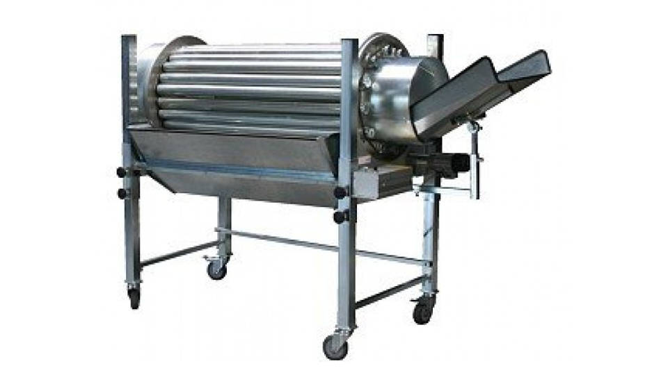 Separation drum with central adjustment Type PZ 3512 B in a reinforced configuration for use in die-casting industry or general metalworking. Rollers of steel or stainless steel and a reinforced base provide the necessary stability for use in a harsh environment.