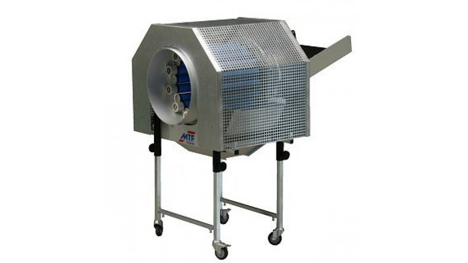 The drum cages of MTF separation drums are driven by a friction wheel as standard. Thus serious injuries to machine operators by the spinning cage are already prevented. However, sharp-edged pieces that come through the separation gaps can pose a safety hazard.
