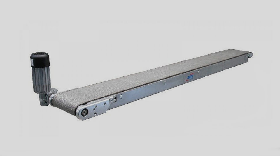The straight steel mesh conveyors of type IS are often delivered without underframe, as they are integrated into automation machinery or stamping tools. If necessary, they can be equipped with all types of underframes for belt conveyors. Usually, these conveyors are not longer than 2,000mm and not wider than 300mm.